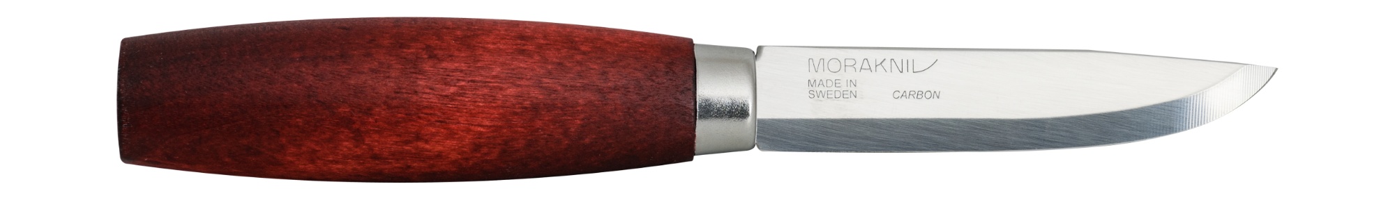Morakniv Classic Nr 1/0. Här är en äkta klassisk hantverks- och friluftskniv som varit en del av den svenska hantverkstraditionen i över ett sekel. Den är dessutom lätt att återskärpa vilket gör att du kan använda den om och om igen. Med ett spolformat rödbetsat björkskaft och ett 2 mm tjockt blad av kolstål är ingen uppgift omöjlig. Knivslidan av polymer har en polerad yta och är klädd med Dalavapnet. Den kompletteras med en bältesstropp av svenskt vegetabiliskt garvat läder, designad att stå emot tidens tand i generationer framöver. Kolstål rostar, så torka av och olja in bladet efter användning. Bladtjocklek: 2mm Bladlängd: 77mm Totallängd: 204mm Vikt: 55g.
