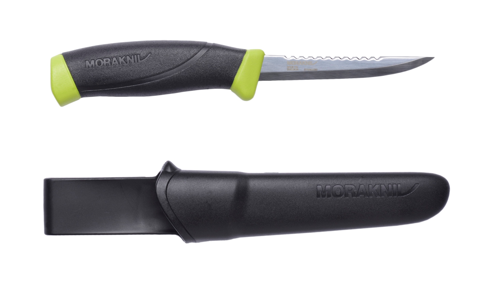 Morakniv Companion Fishing Scaler 98 - Här är en fiskekniv för dig som behöver arbeta säkert och effektivt i fuktiga miljöer. Bladet av återvunnet svenskt rostfritt stål har en tandad bladrygg, utvecklat för att fjälla och rensa fisk. Det ergonomiska skaftet av polymer har ett mjukt friktionsgrepp, fingerskydd och ett 2,0 mm tjockt blad av återvunnet svenskt rostfritt stål, som ger både styrka och stabilitet i varje snitt. Tack vare blad- och skaftkonstruktionen blir kniven optimal för att kunna arbeta säkert och effektivt i olika väderförhållanden året runt. Knivslidan av polymer är enkel att rengöra och har ett praktiskt bältes-clip så att kniven kan fästas på bältet eller ryggsäcken, alltid nära till hands. Bladtjocklek: 2,0mm Bladlängd: 98mm Totallängd: 214mm Vikt: 104g.