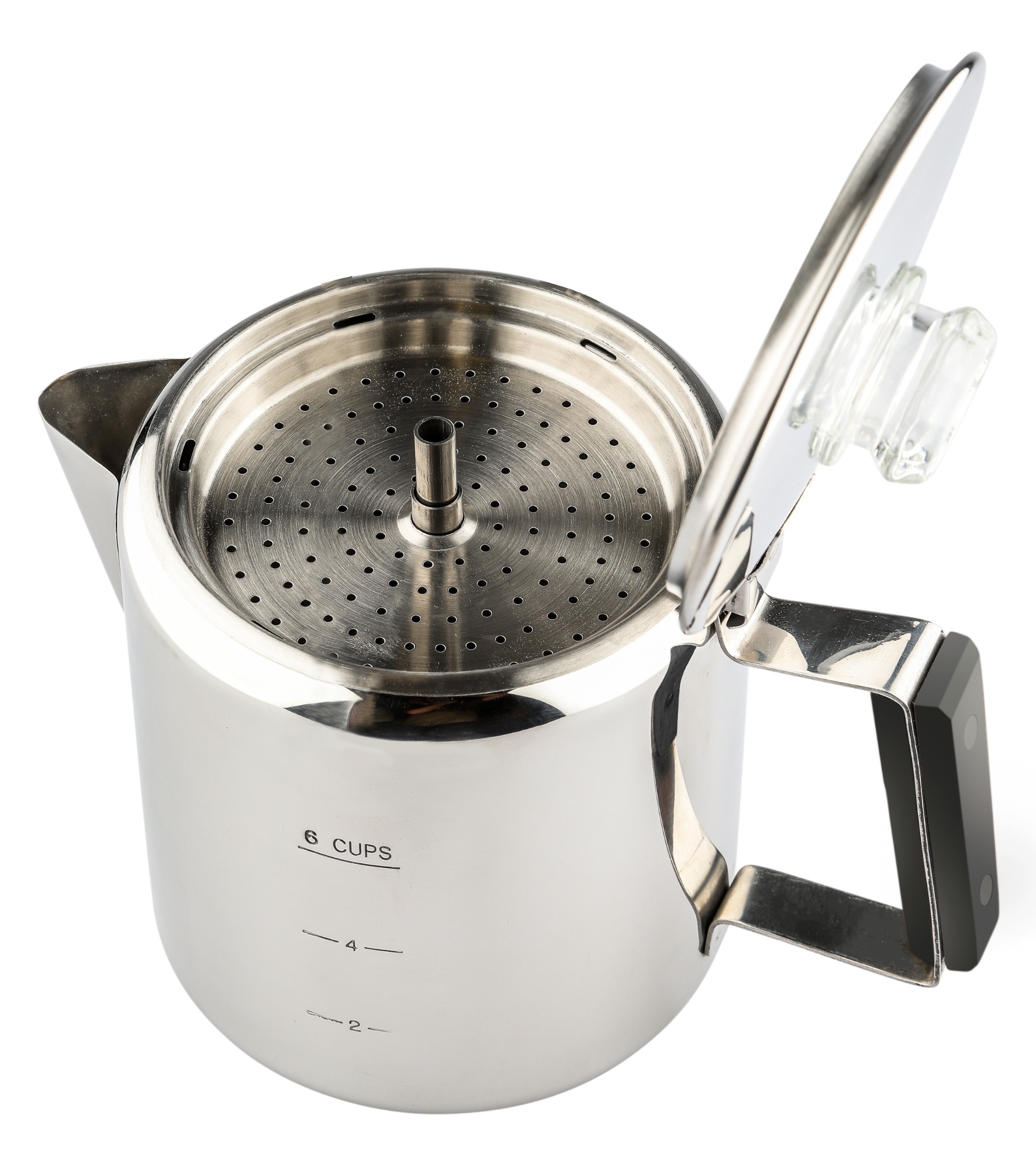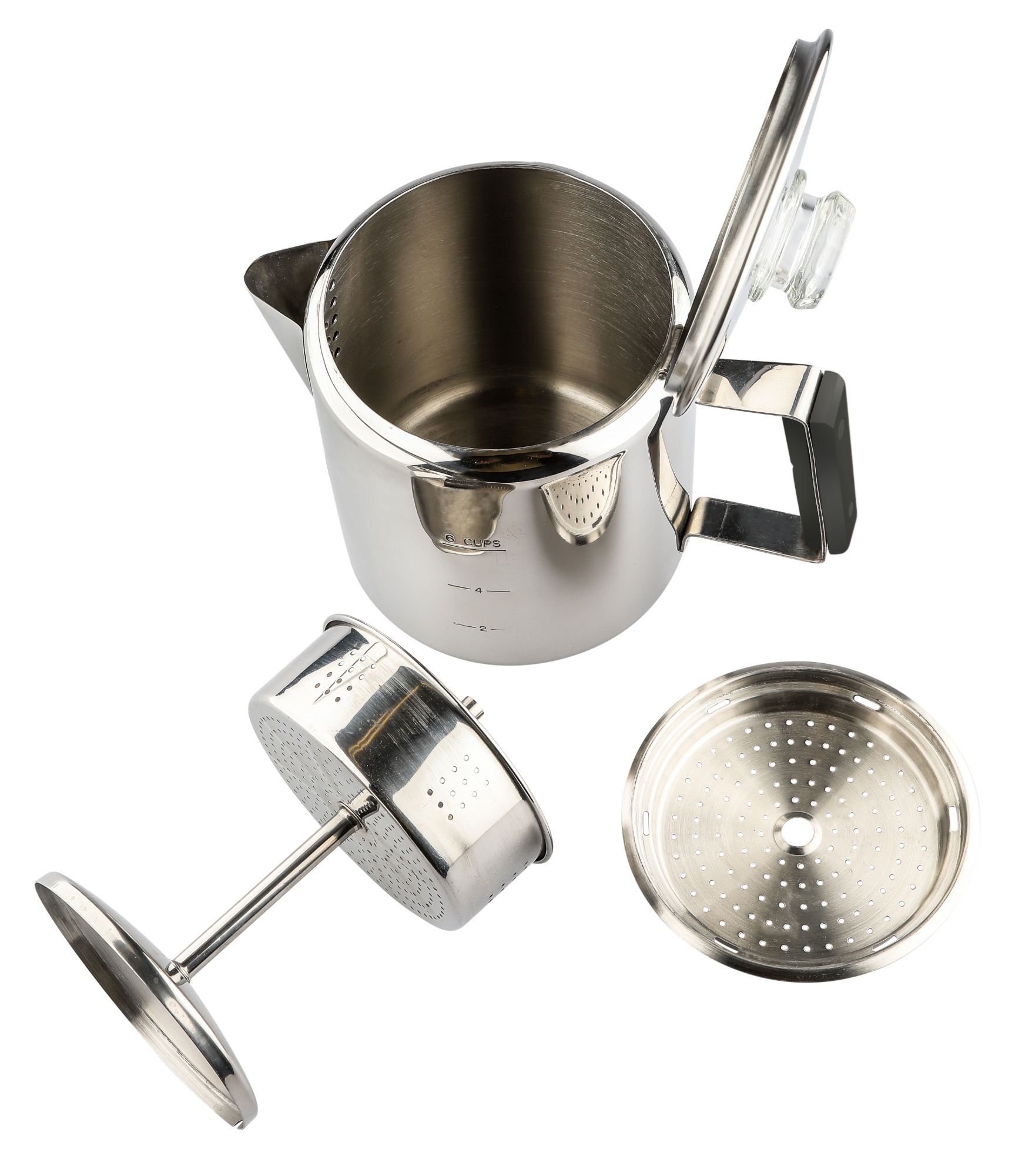 IFISH Perkulator. Tillverkad i rostfritt stål (18/8SS) och avsedd för att användas tillsammans med gasolbrännare / gasolkök. Kapacitet 1,4L eller 6 koppar. Vikt 785g.